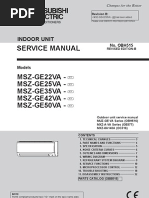 Obh516 revised edition c outdoor unit indoor unit service manual msz ge va series obh515 msz cge va series obh523 parts catalog obb516 muz ge25va muz ge35va muz ge42va revision c.